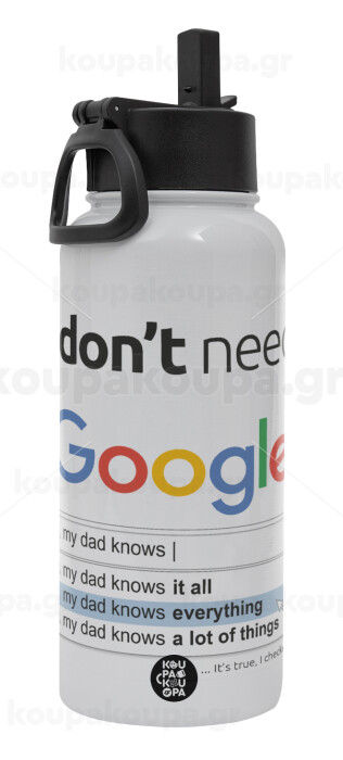 I don't need Google my dad..., Μεταλλικό παγούρι θερμός Λευκό με καλαμάκι και χερούλι (Stainless steel), διπλού τοιχώματος, 950ml