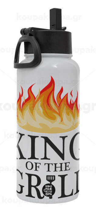KING of the Grill GOT edition, Μεταλλικό παγούρι θερμός Λευκό με καλαμάκι και χερούλι (Stainless steel), διπλού τοιχώματος, 950ml