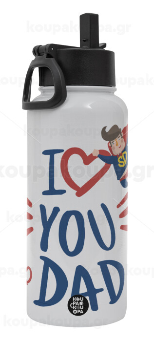 Super Dad, Μεταλλικό παγούρι θερμός Λευκό με καλαμάκι και χερούλι (Stainless steel), διπλού τοιχώματος, 950ml