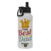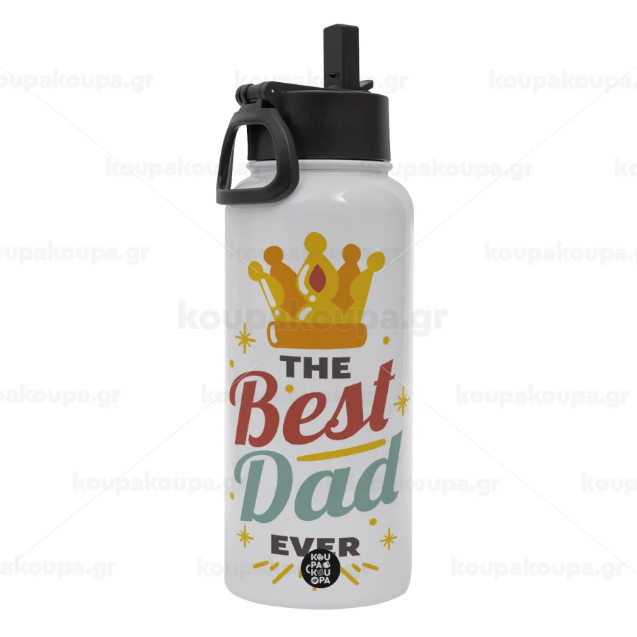 The Best DAD ever, Μεταλλικό παγούρι θερμός Λευκό με καλαμάκι και χερούλι (Stainless steel), διπλού τοιχώματος, 950ml