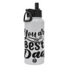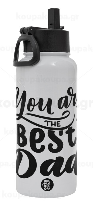 You are the best Dad, Μεταλλικό παγούρι θερμός Λευκό με καλαμάκι και χερούλι (Stainless steel), διπλού τοιχώματος, 950ml