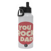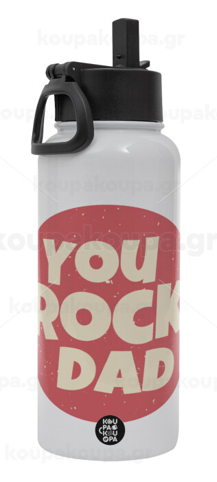 YOU ROCK DAD, Μεταλλικό παγούρι θερμός Λευκό με καλαμάκι και χερούλι (Stainless steel), διπλού τοιχώματος, 950ml