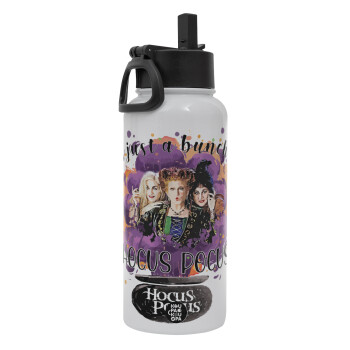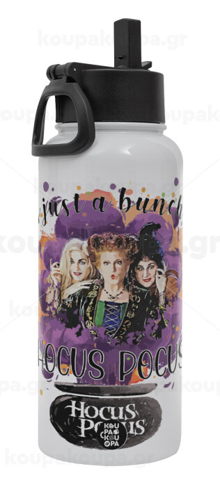 Hocus Pocus, Μεταλλικό παγούρι θερμός Λευκό με καλαμάκι και χερούλι (Stainless steel), διπλού τοιχώματος, 950ml