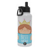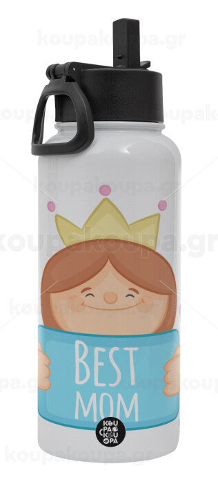 Best mom Princess, Μεταλλικό παγούρι θερμός Λευκό με καλαμάκι και χερούλι (Stainless steel), διπλού τοιχώματος, 950ml