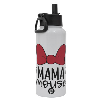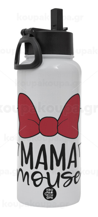 MAMA mouse, Μεταλλικό παγούρι θερμός Λευκό με καλαμάκι και χερούλι (Stainless steel), διπλού τοιχώματος, 950ml