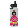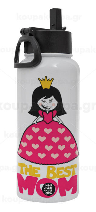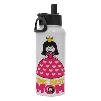 The Best Mom Queen, Μεταλλικό παγούρι θερμός Λευκό με καλαμάκι και χερούλι (Stainless steel), διπλού τοιχώματος, 950ml