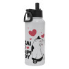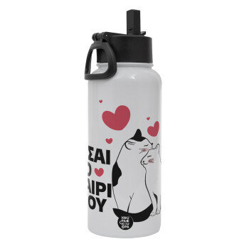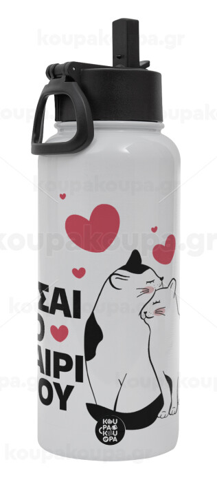 Είσαι το ταίρι μου, Μεταλλικό παγούρι θερμός Λευκό με καλαμάκι και χερούλι (Stainless steel), διπλού τοιχώματος, 950ml