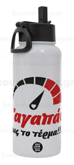 Σ΄ αγαπώ ως το τέρμα!!!, Μεταλλικό παγούρι θερμός Λευκό με καλαμάκι και χερούλι (Stainless steel), διπλού τοιχώματος, 950ml