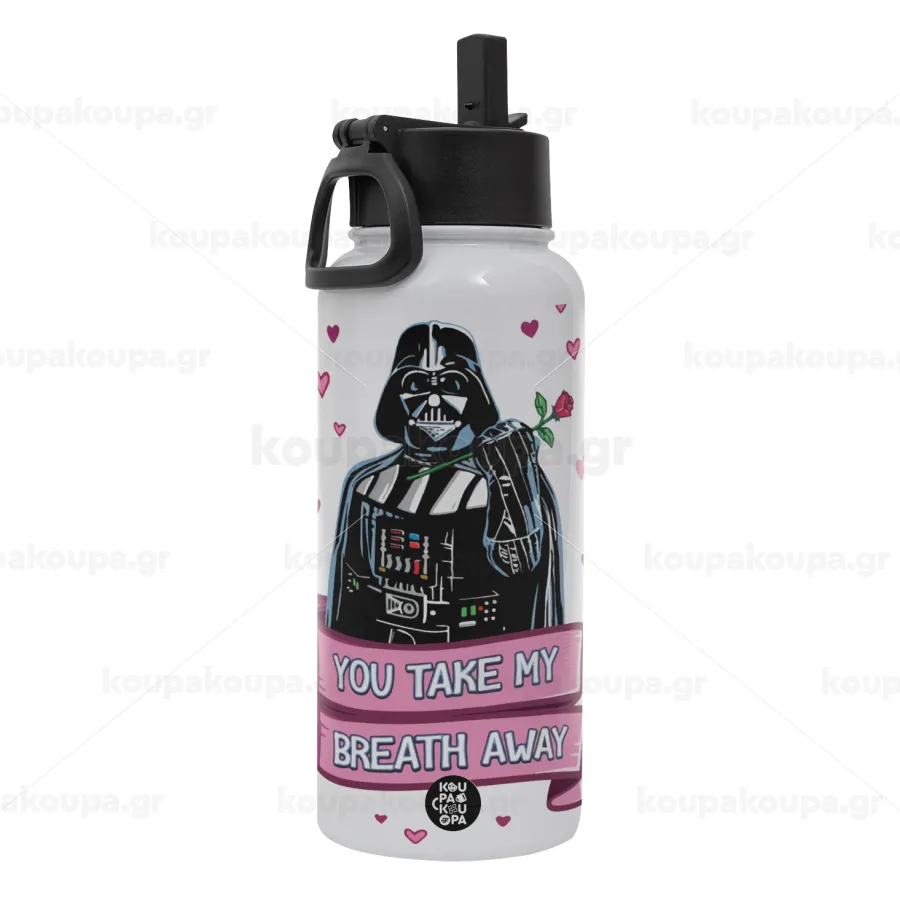 Darth Vader, you take my breath away, Μεταλλικό παγούρι θερμός Λευκό με καλαμάκι και χερούλι (Stainless steel), διπλού τοιχώματος, 950ml