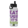 EAT pussy it's vegan, Μεταλλικό παγούρι θερμός Λευκό με καλαμάκι και χερούλι (Stainless steel), διπλού τοιχώματος, 950ml