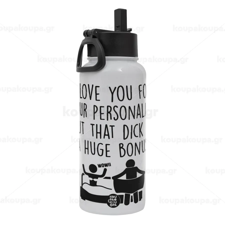I Love You for Your Personality But that D... Is a Huge Bonus , Μεταλλικό παγούρι θερμός Λευκό με καλαμάκι και χερούλι (Stainless steel), διπλού τοιχώματος, 950ml