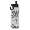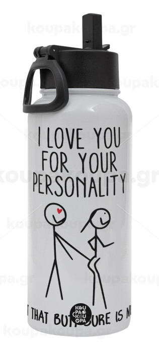 I Love you for your personality, Μεταλλικό παγούρι θερμός Λευκό με καλαμάκι και χερούλι (Stainless steel), διπλού τοιχώματος, 950ml