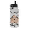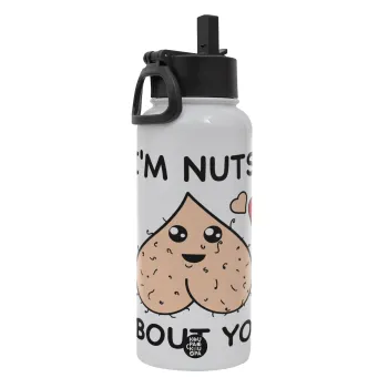 I'm Nuts About You, Μεταλλικό παγούρι θερμός Λευκό με καλαμάκι και χερούλι (Stainless steel), διπλού τοιχώματος, 950ml