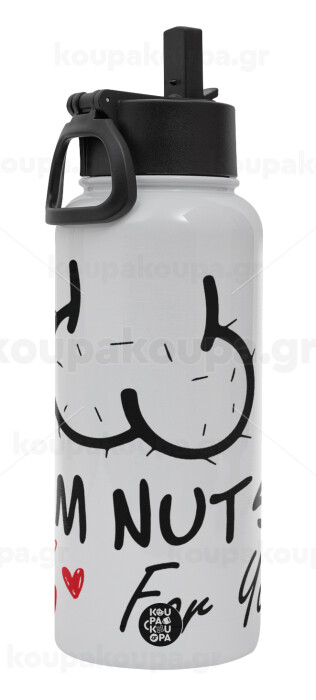 I'm Nuts for you, Μεταλλικό παγούρι θερμός Λευκό με καλαμάκι και χερούλι (Stainless steel), διπλού τοιχώματος, 950ml