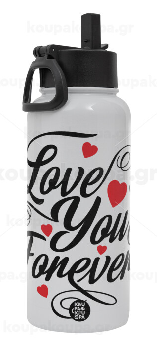 Love you forever, Μεταλλικό παγούρι θερμός Λευκό με καλαμάκι και χερούλι (Stainless steel), διπλού τοιχώματος, 950ml