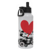 Mickey & Minnie love car, Μεταλλικό παγούρι θερμός Λευκό με καλαμάκι και χερούλι (Stainless steel), διπλού τοιχώματος, 950ml