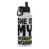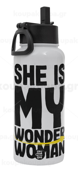 She is my wonder woman, Μεταλλικό παγούρι θερμός Λευκό με καλαμάκι και χερούλι (Stainless steel), διπλού τοιχώματος, 950ml