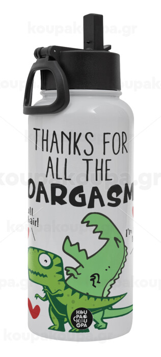 Thanks for all the ROARGASMS, Μεταλλικό παγούρι θερμός Λευκό με καλαμάκι και χερούλι (Stainless steel), διπλού τοιχώματος, 950ml