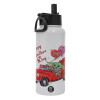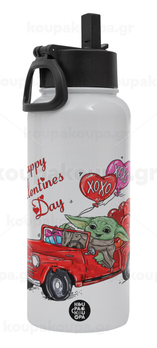 Yoda, happy valentines day (xoxo), Μεταλλικό παγούρι θερμός Λευκό με καλαμάκι και χερούλι (Stainless steel), διπλού τοιχώματος, 950ml