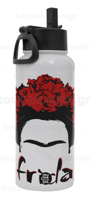 Frida, Μεταλλικό παγούρι θερμός Λευκό με καλαμάκι και χερούλι (Stainless steel), διπλού τοιχώματος, 950ml