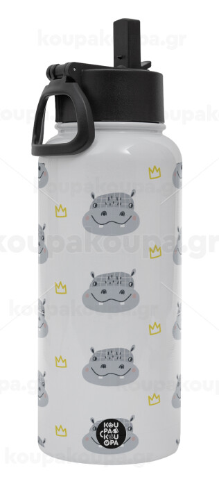 Hippo, Μεταλλικό παγούρι θερμός Λευκό με καλαμάκι και χερούλι (Stainless steel), διπλού τοιχώματος, 950ml