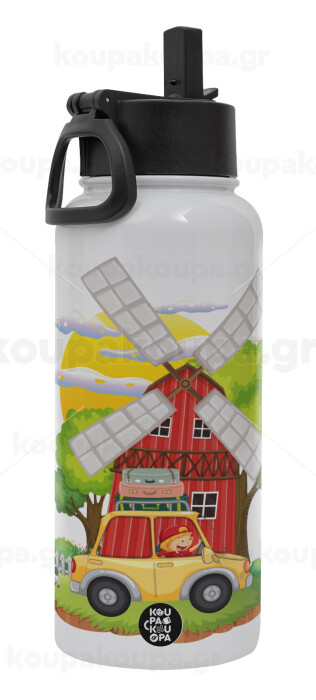Toy car, Μεταλλικό παγούρι θερμός Λευκό με καλαμάκι και χερούλι (Stainless steel), διπλού τοιχώματος, 950ml