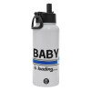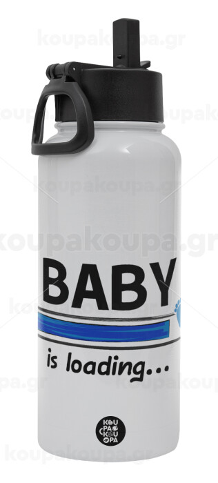 Baby is Loading BOY, Μεταλλικό παγούρι θερμός Λευκό με καλαμάκι και χερούλι (Stainless steel), διπλού τοιχώματος, 950ml