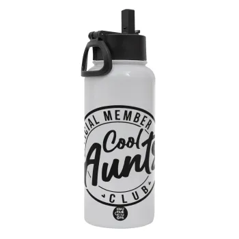 Cool Aunts club, Μεταλλικό παγούρι θερμός Λευκό με καλαμάκι και χερούλι (Stainless steel), διπλού τοιχώματος, 950ml