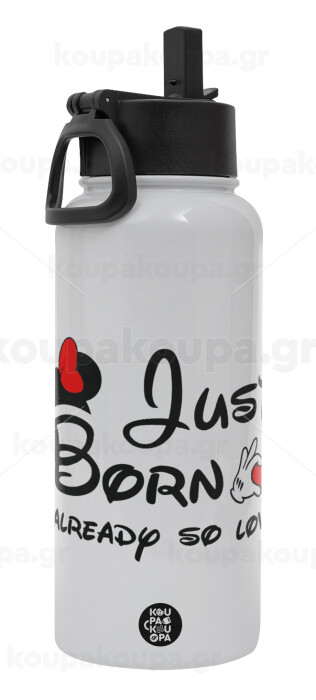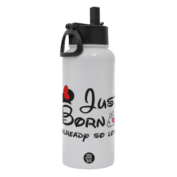 Just born already so loved, Μεταλλικό παγούρι θερμός Λευκό με καλαμάκι και χερούλι (Stainless steel), διπλού τοιχώματος, 950ml