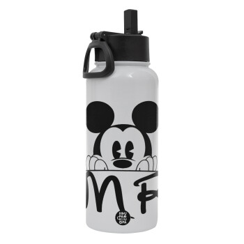 Mikey Mr, Μεταλλικό παγούρι θερμός Λευκό με καλαμάκι και χερούλι (Stainless steel), διπλού τοιχώματος, 950ml