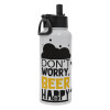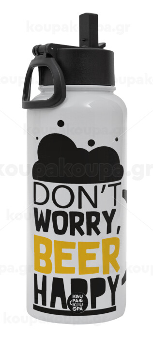 Don't worry BEER Happy, Μεταλλικό παγούρι θερμός Λευκό με καλαμάκι και χερούλι (Stainless steel), διπλού τοιχώματος, 950ml