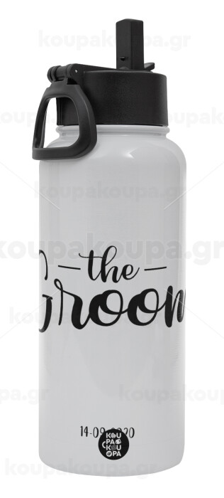 Groom & Bride (Groom), Μεταλλικό παγούρι θερμός Λευκό με καλαμάκι και χερούλι (Stainless steel), διπλού τοιχώματος, 950ml