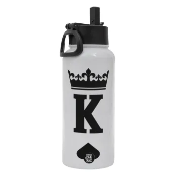 King, Μεταλλικό παγούρι θερμός Λευκό με καλαμάκι και χερούλι (Stainless steel), διπλού τοιχώματος, 950ml