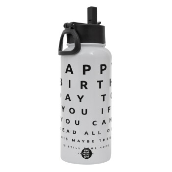 EYE tester happy birthday., Μεταλλικό παγούρι θερμός Λευκό με καλαμάκι και χερούλι (Stainless steel), διπλού τοιχώματος, 950ml