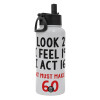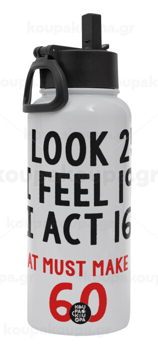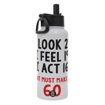 I look, i feel, i act..., Μεταλλικό παγούρι θερμός Λευκό με καλαμάκι και χερούλι (Stainless steel), διπλού τοιχώματος, 950ml