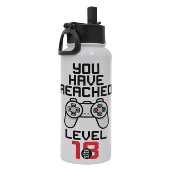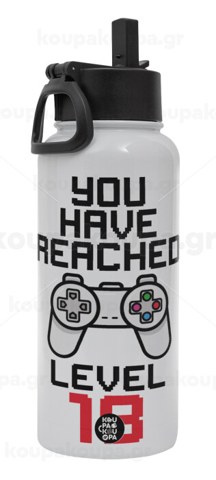 You have Reached level AGE, Μεταλλικό παγούρι θερμός Λευκό με καλαμάκι και χερούλι (Stainless steel), διπλού τοιχώματος, 950ml