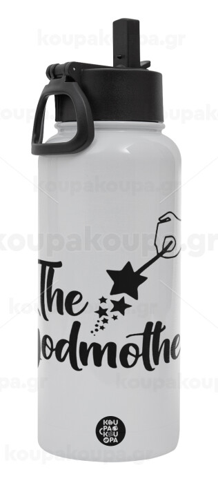 Fairy God Mother, Μεταλλικό παγούρι θερμός Λευκό με καλαμάκι και χερούλι (Stainless steel), διπλού τοιχώματος, 950ml