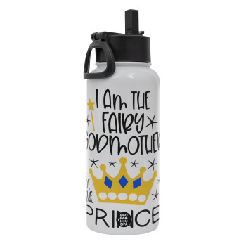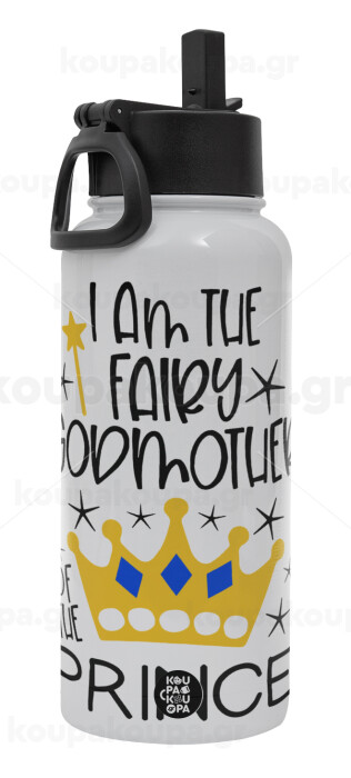 I am the fairy Godmother of the Prince, Μεταλλικό παγούρι θερμός Λευκό με καλαμάκι και χερούλι (Stainless steel), διπλού τοιχώματος, 950ml