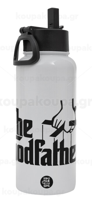 The Godfather, Μεταλλικό παγούρι θερμός Λευκό με καλαμάκι και χερούλι (Stainless steel), διπλού τοιχώματος, 950ml