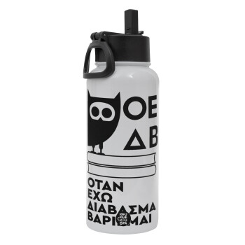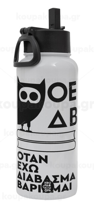 ΟΕΔΒ, Μεταλλικό παγούρι θερμός Λευκό με καλαμάκι και χερούλι (Stainless steel), διπλού τοιχώματος, 950ml