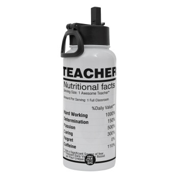 Τα συστατικά του δασκάλου, Μεταλλικό παγούρι θερμός Λευκό με καλαμάκι και χερούλι (Stainless steel), διπλού τοιχώματος, 950ml