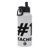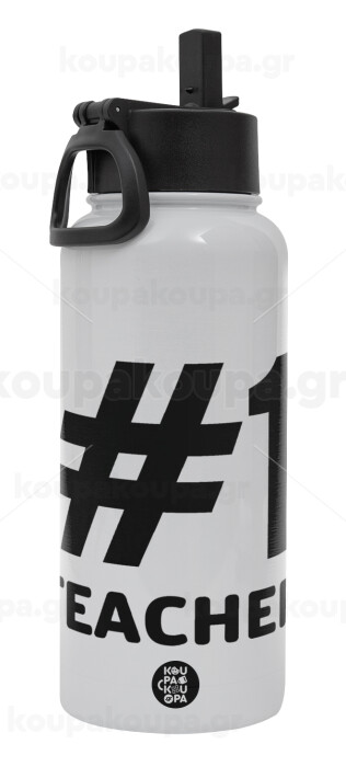 #1 teacher, Μεταλλικό παγούρι θερμός Λευκό με καλαμάκι και χερούλι (Stainless steel), διπλού τοιχώματος, 950ml