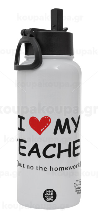 i love my teacher but no the homework, Μεταλλικό παγούρι θερμός Λευκό με καλαμάκι και χερούλι (Stainless steel), διπλού τοιχώματος, 950ml