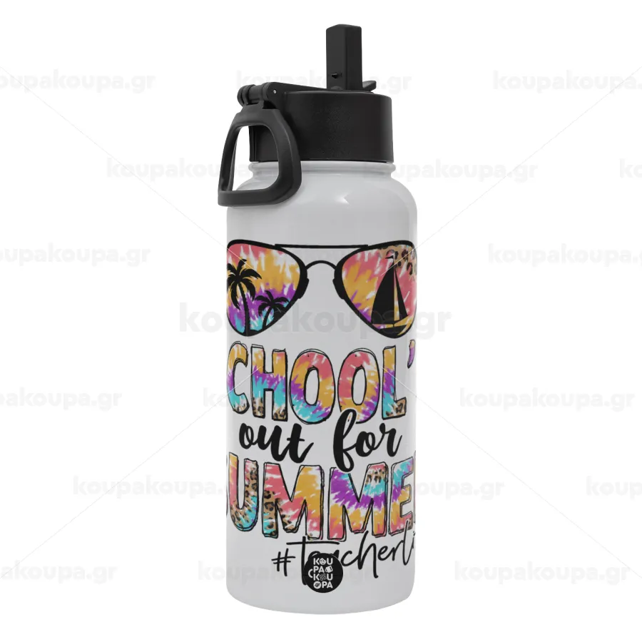 School's Out For Summer Teacher Life, Μεταλλικό παγούρι θερμός Λευκό με καλαμάκι και χερούλι (Stainless steel), διπλού τοιχώματος, 950ml