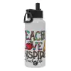 Teach, Love, Inspire, Μεταλλικό παγούρι θερμός Λευκό με καλαμάκι και χερούλι (Stainless steel), διπλού τοιχώματος, 950ml