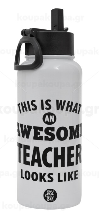 This is what an awesome teacher looks like hands!!! , Μεταλλικό παγούρι θερμός Λευκό με καλαμάκι και χερούλι (Stainless steel), διπλού τοιχώματος, 950ml