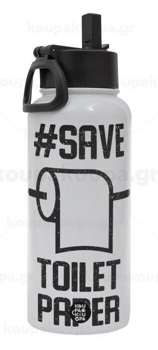 Save toilet Paper, Μεταλλικό παγούρι θερμός Λευκό με καλαμάκι και χερούλι (Stainless steel), διπλού τοιχώματος, 950ml