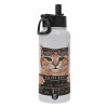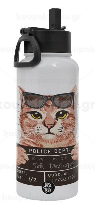 Cool cat, Μεταλλικό παγούρι θερμός Λευκό με καλαμάκι και χερούλι (Stainless steel), διπλού τοιχώματος, 950ml