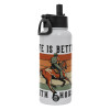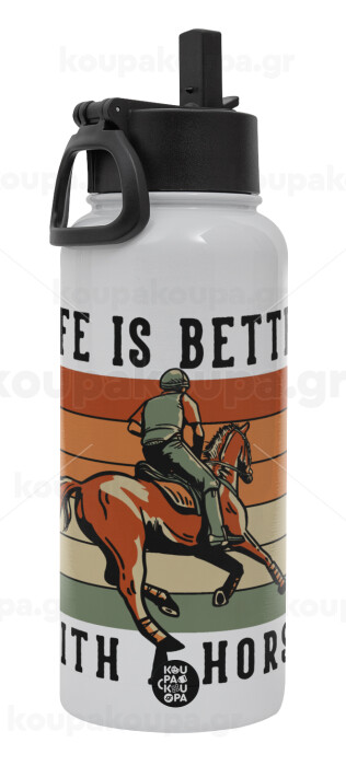 Life is Better with a Horse, Μεταλλικό παγούρι θερμός Λευκό με καλαμάκι και χερούλι (Stainless steel), διπλού τοιχώματος, 950ml