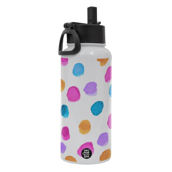 Watercolor dots, Μεταλλικό παγούρι θερμός Λευκό με καλαμάκι και χερούλι (Stainless steel), διπλού τοιχώματος, 950ml